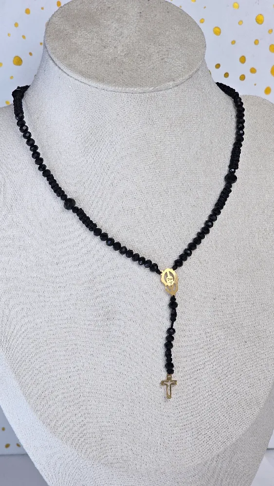 Crafted from high-quality 18-carat gold, this necklace is built for durability and everyday wear. The black beads offer a striking contrast to the gold accents, making this necklace both eye-catching and versatile. Comfortable and lightweight, it’s the perfect accessory for those who want to express their faith in a trendy, subtle way.